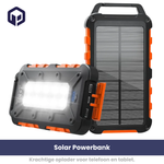 Let op: Het zonnepaneel op deze powerbank is vooral bedoeld om het ingebouwde noodlicht op te laden. Voor het opladen van andere apparaten raden we aan de powerbank vooraf volledig via het stopcontact op te laden.