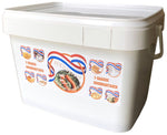 De Weekbox wordt geleverd in een stevige, waterdichte bewaaremmer (t.w.v. €8,50) en bevat een compleet assortiment maaltijden en dranken: